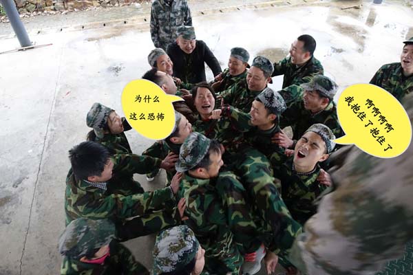 最后一个项目为人型墙,团队成员不能借助外力,翻阅一道4米高的围墙。人形墩、人型墙,有团队在的地方,就没有越不过去的墙。